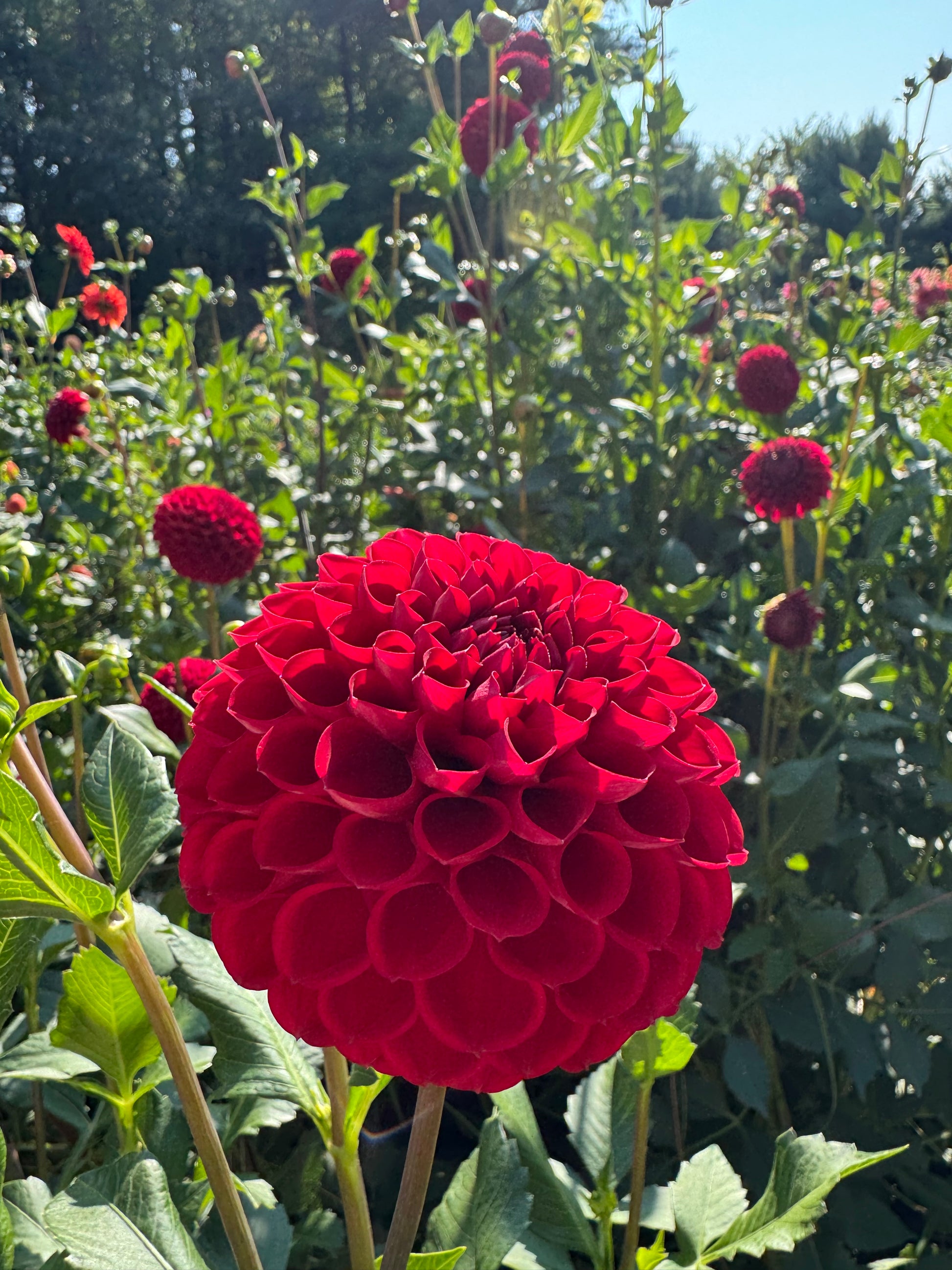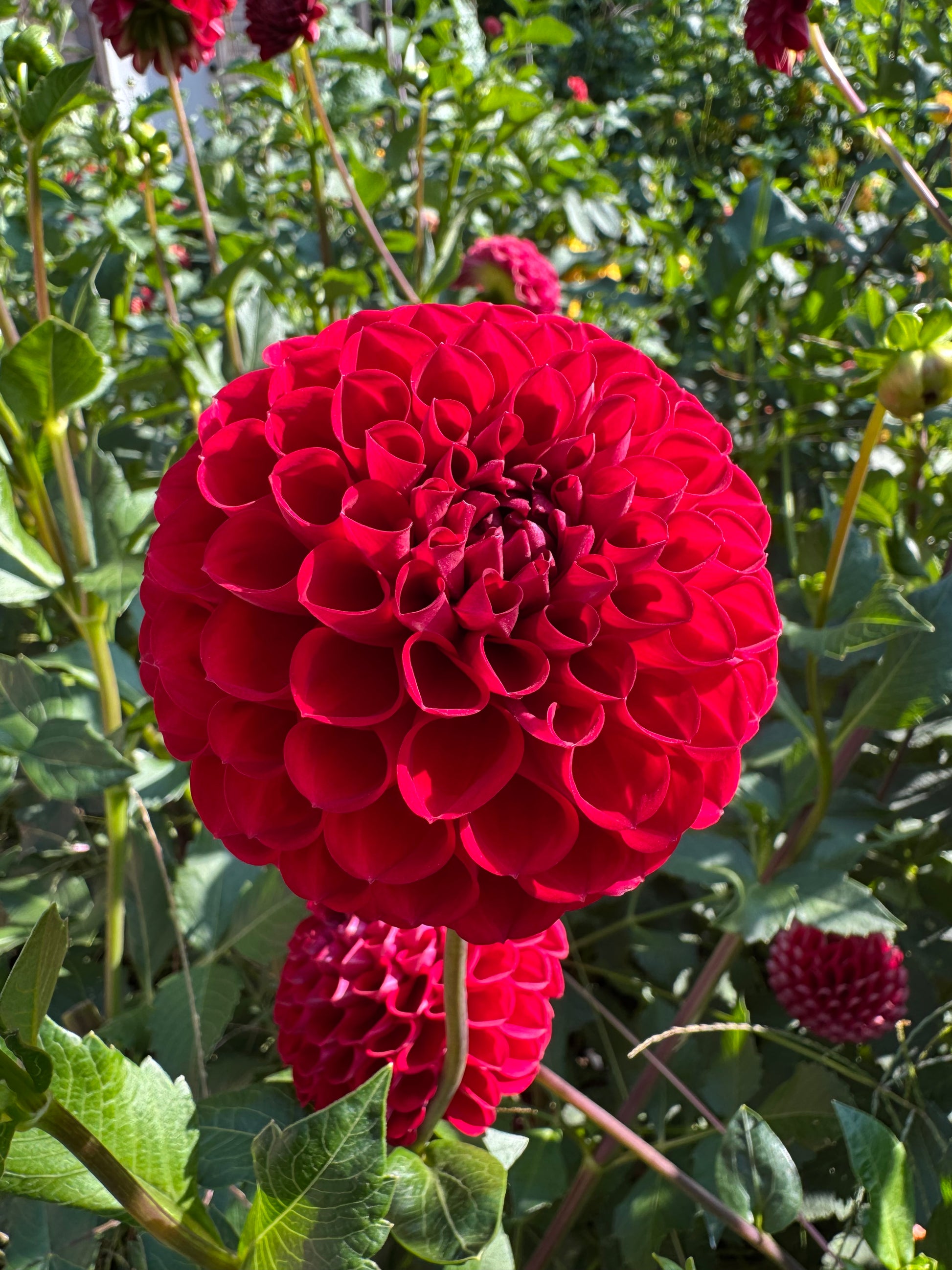 Deep red 3-4 inch ball dahlia. A standard among dahlia growers!